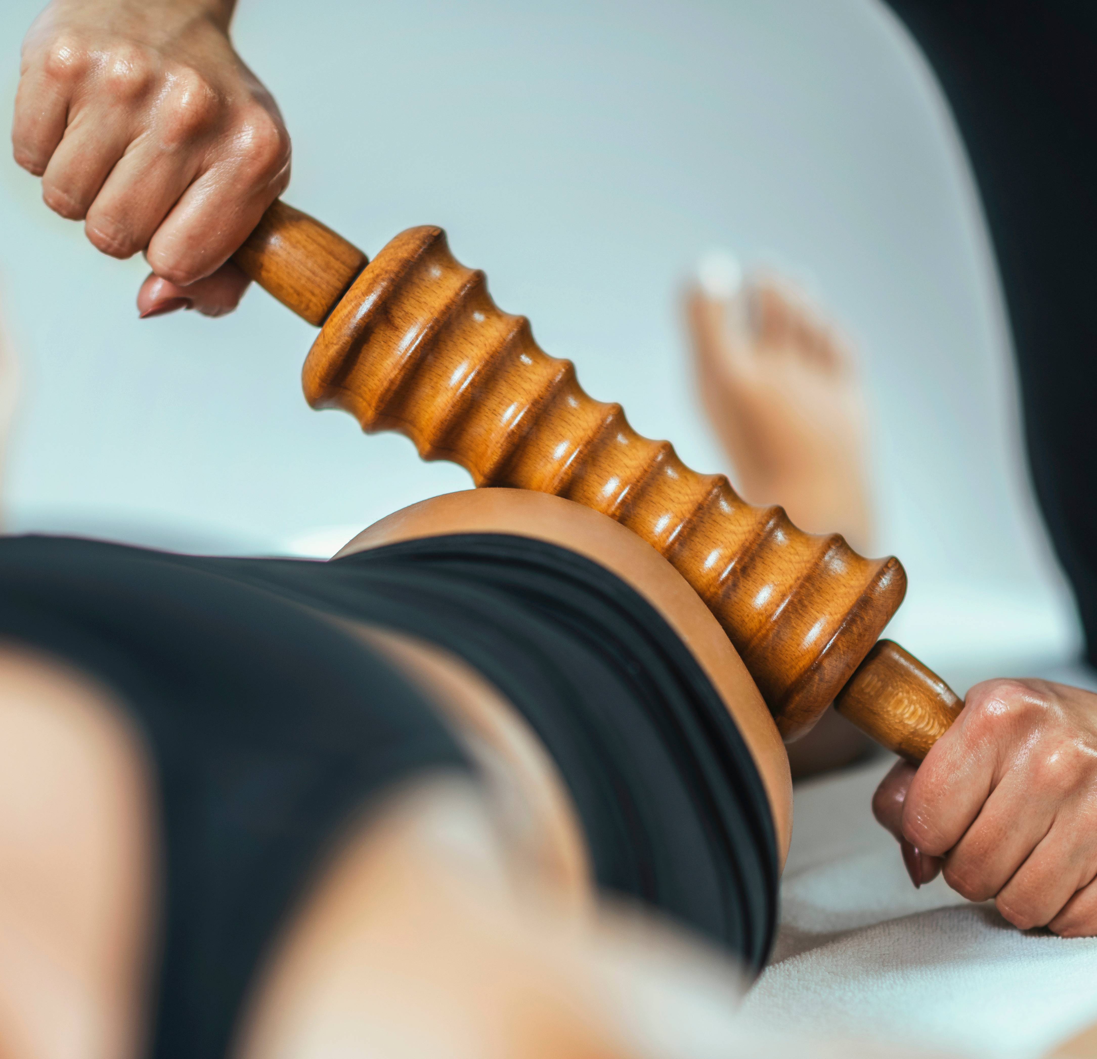 La madérothérapie, également proposée pour le visage, est une technique manuelle réalisée à l’aide d’outils en bois spécialement conçus pour sculpter, stimuler et tonifier les tissus. Elle permet d’activer la circulation, de lisser les zones de rétention et d’améliorer visiblement la silhouette. Pratiquée avec précision, cette méthode offre un véritable travail en profondeur pour retrouver confort, légèreté et harmonie corporelle.